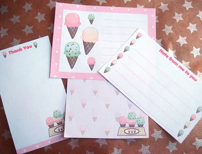 I've just added 3 cute printable Ice Cream Stationery set/designs to my shop! One is the full stationery set. Envelope, notepaper, notecards, gift tags, thank you cards, collage/sticker sheet and to-do-lists. I've also got a 2 set piece set. It's got the envelope design and matching notepaper to go with. And the last is an adorable ice cream book plate design. Available to download in my store now!